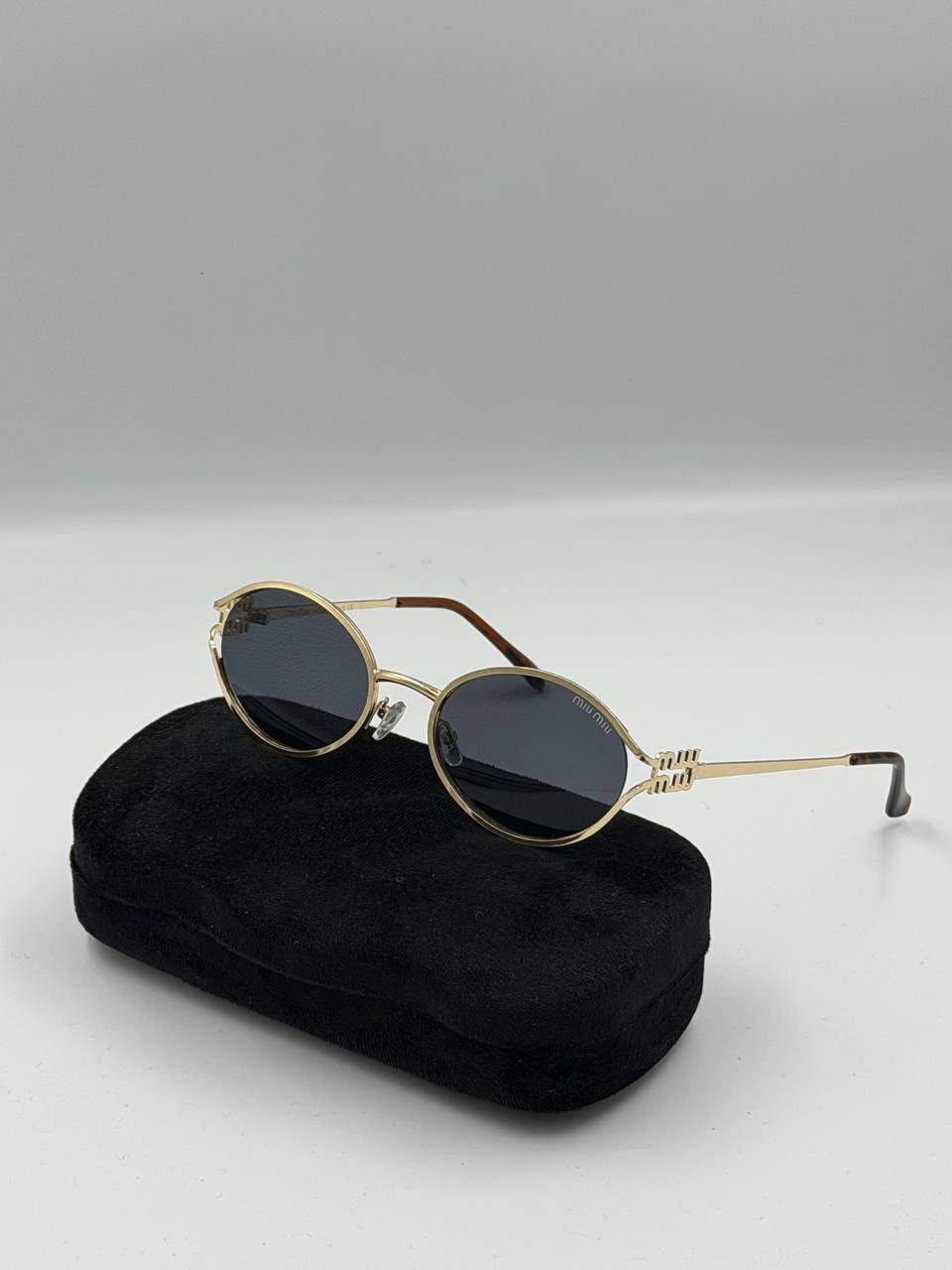 عینک آفتابی زنانه میو میو مدل بیضی با فریم فلزی طلایی