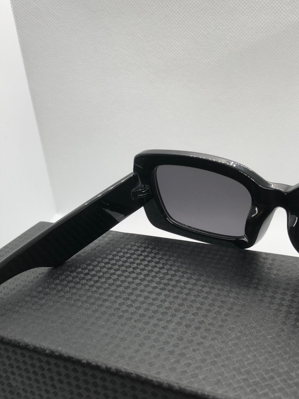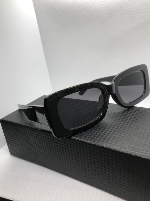 عینک آفتابی – فریم مستطیلی مشکی براق با لنز تیره